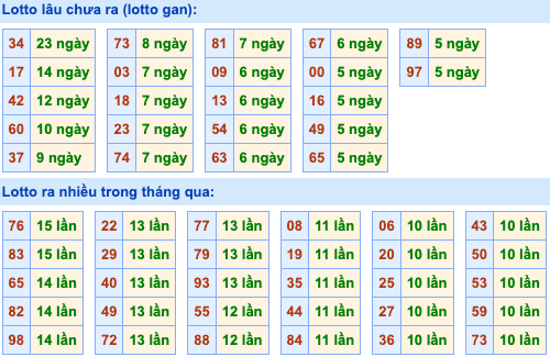 Dữ liệu chúng tôi phân tích tiếp theo đó chính là lô gan. Nếu anh em chơi lô đề hàng ngày thì không thể bỏ qua việc phân tích lô gan lâu chưa ra. Sau đây mời anh em cùng theo dõi những con lô gan lâu chưa về ở bảng bên dưới.