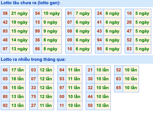 Dữ liệu chúng tôi phân tích tiếp theo đó chính là lô gan. Nếu anh em chơi lô đề hàng ngày thì không thể bỏ qua việc phân tích lô gan lâu chưa ra. Sau đây mời anh em cùng theo dõi những con lô gan lâu chưa về ở bảng bên dưới.