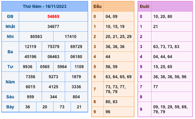 - Hôm qua về lô 69 => Soi Cầu XSMB 17-11-2023 sẽ có: 36 – 63 và 78